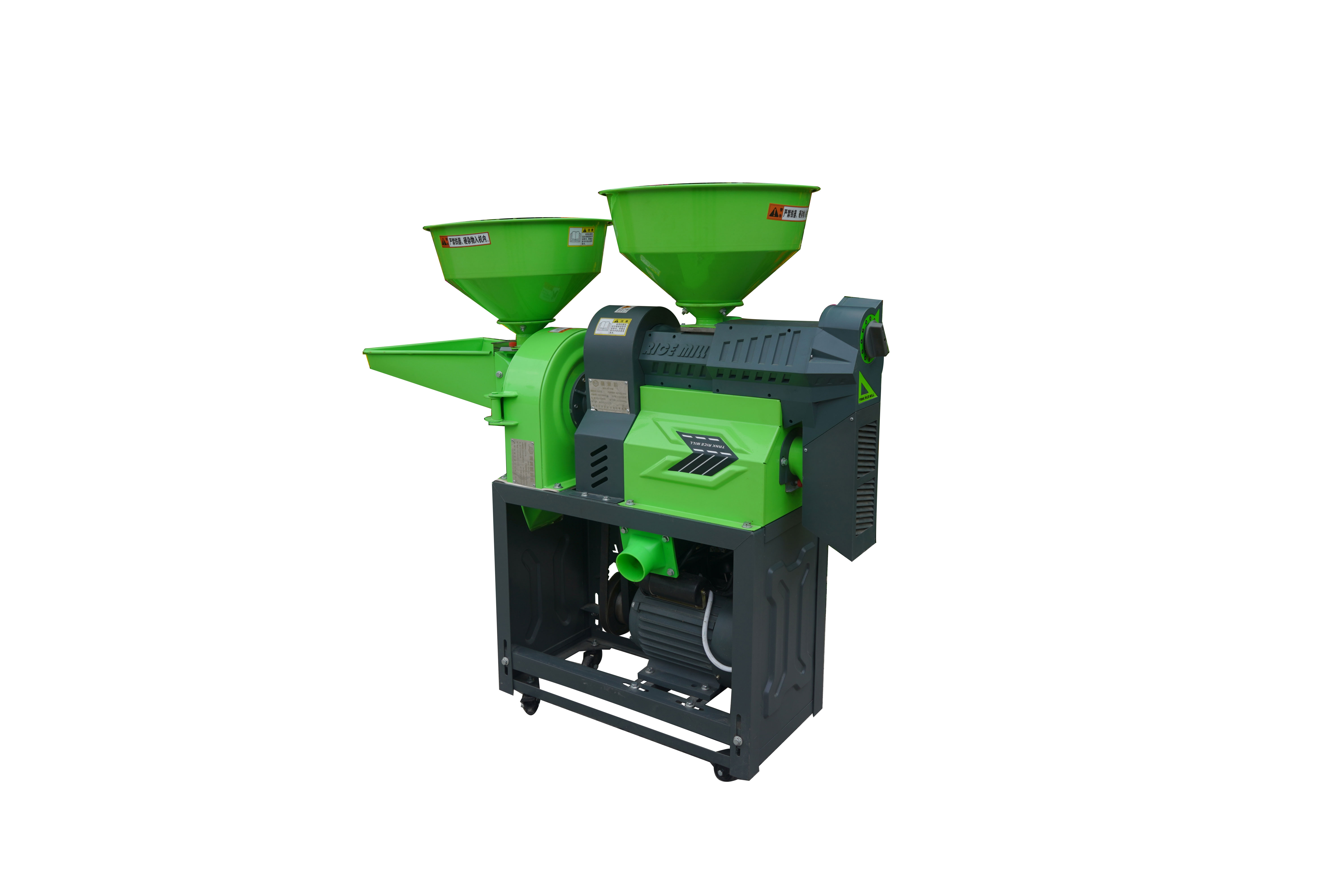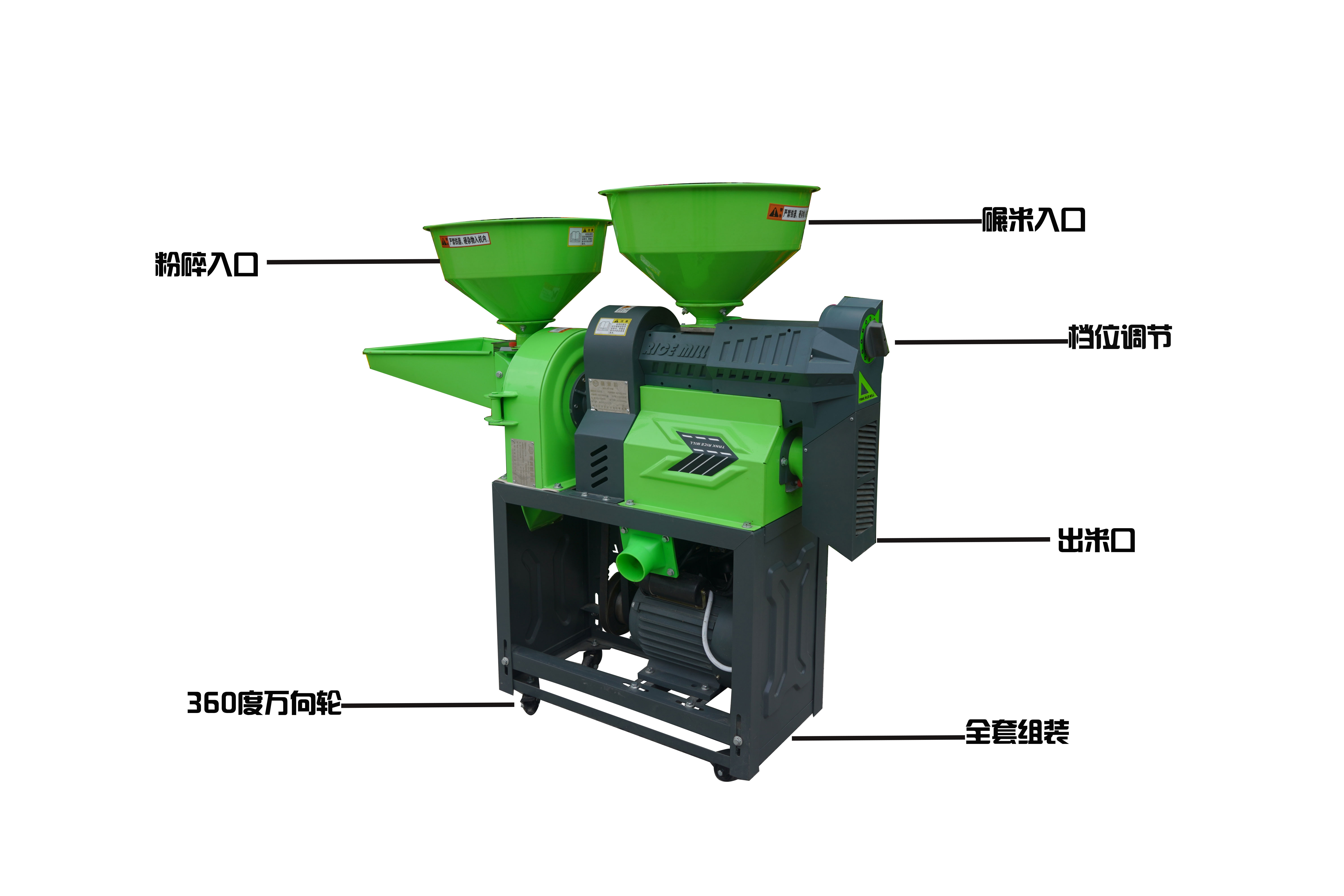 碾米機(jī)部分:碾大米 小米 玉米脫皮等,可將稻谷一次加工成大米,無需二次加工。在碾米過程中,同時(shí)完成米糠分離,合金鋼米輥更耐用。
